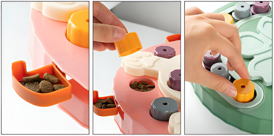 A mini gym for your dogs mind! With sliding parts and hidden treats, your dog gets a dose of mental stimulation that keeps them sharp, curious, and ready to learn new tricks.